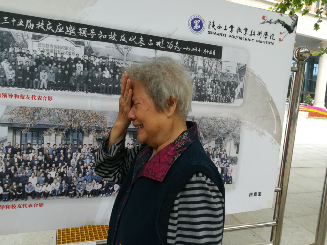 (我院退休老师教看展板时感慨万分,潸然泪下)
